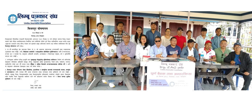 सुनसरी  ।   लिम्बू पत्रकार संघले धरानमा ३ बुँदे बिजयपूर घोषणापत्र जारि गरेको छ । शनिवार सुनसरी धरानमा मुक्कुमलुङ आन्दोलनप्रति ऐक्यबद्धतासहित बिजयपुर घोषणापत्र जारि गरिएको हो ।