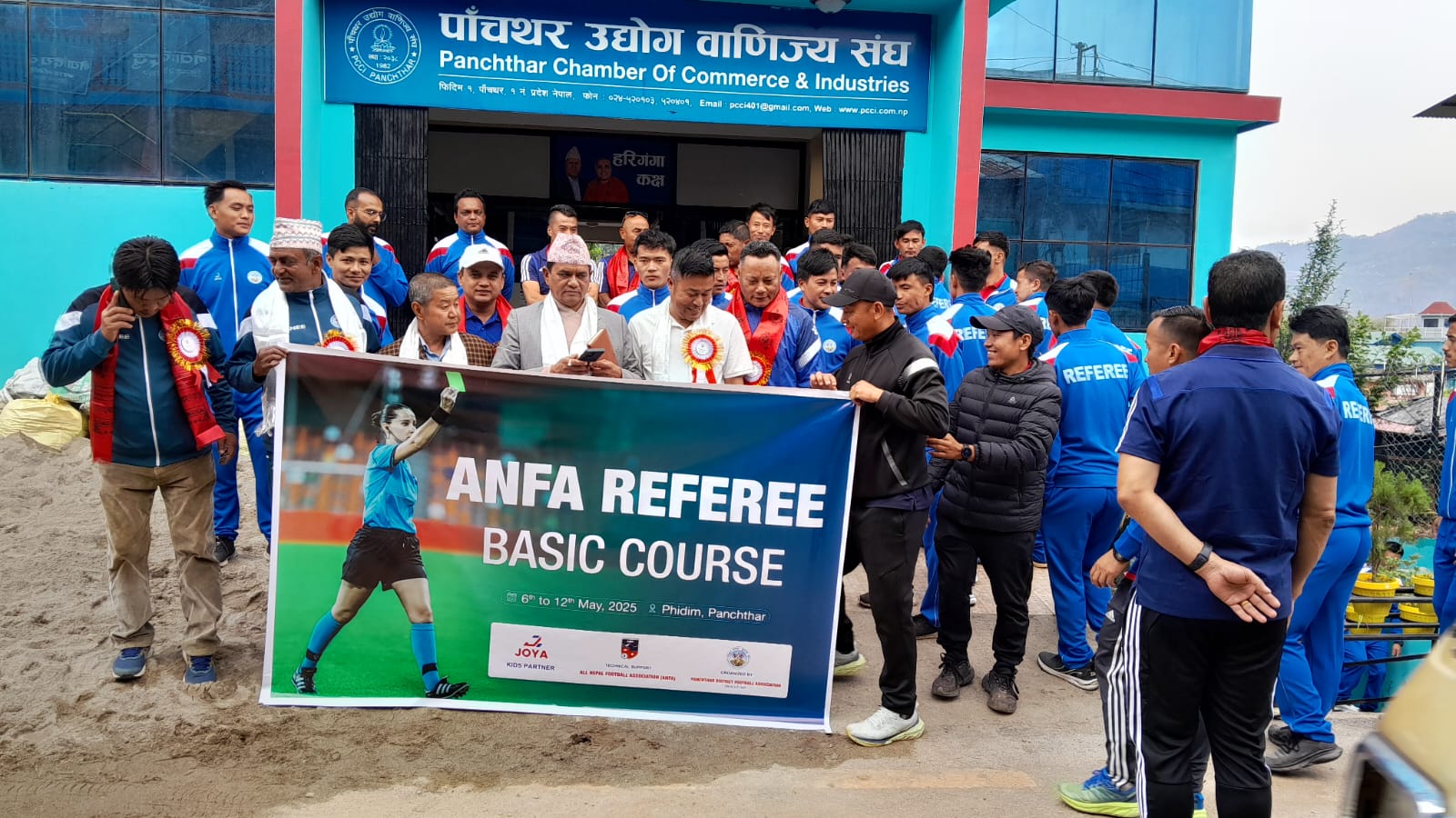 पाँचथर । ४३ जना फुटबल खेलाडीहरुलाई फुटबल रेफ्री तालिम फिदिममा सुरु भएको छ । अखिल नेपाल फुटकल संघ एन्फा पाँचथरको आयोजनामा पाँचथर, ताप्लेजुङ र तेह्रथुम जिल्लाका दुइ महिला सहित ४३ जना खेलाडी सहभागि भएका छन् । जिल्ला तथा स्थानीय तहहरुमा बर्षेनी धेरै संख्यामा फुटबल खेल संचालन हुदा फुटबल रेफ्री अभावमा कतिपय खेल संचालन गर्न सक्ने अवस्था नभएको भन्दै तालिम दिन थालिएको एन्फा पाँचथर अध्यक्ष गणेस राईले बताए ।
