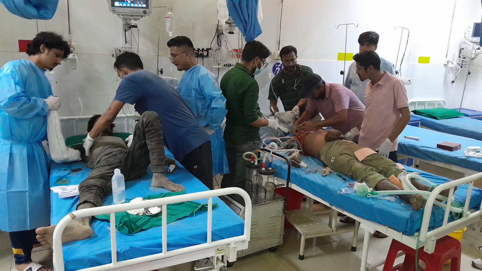 रूपलाल चौधरीको बाहिरी चोट नदेखिएको तत्काल अवस्था बोल्न सक्ने अवस्था छैन । राजन चौधरीको पिठ्युमा चोट छ । भुलेश्वर चौधरीको दायाँ खुट्टा भाँचीएको छ भने प्रकाश चौधरीको टाउकोमा र शरिरको विभिन्न भागमा चोट भएको र अभिषेक चौधरीको टाउकोमा चोट रहेको जिल्ला अस्पताल पाँचथरले जनाएको छ ।
