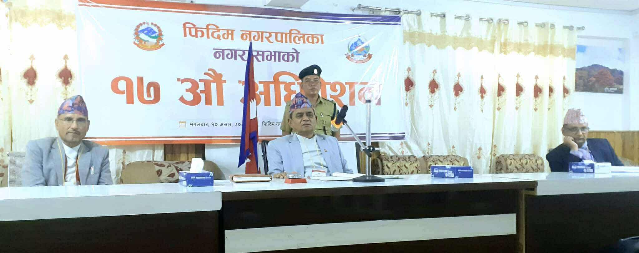 फिदिम नगरको १७ औं नगर सभा अधिबेशनमा उप प्रमूख राधाकृष्ण न्यौपानेले आर्थीक वर्ष २०८२।०८३ का लागि चालु तर्फको ४४ करोड ४४ लाख र पुंजिगत तर्फको ११करोड ३२ लाख,संघीय ससर्त अनुदानतर्फ ५२ करोड ६ लाख रुपैंया प्रक्षेपण गरिएको छ ।