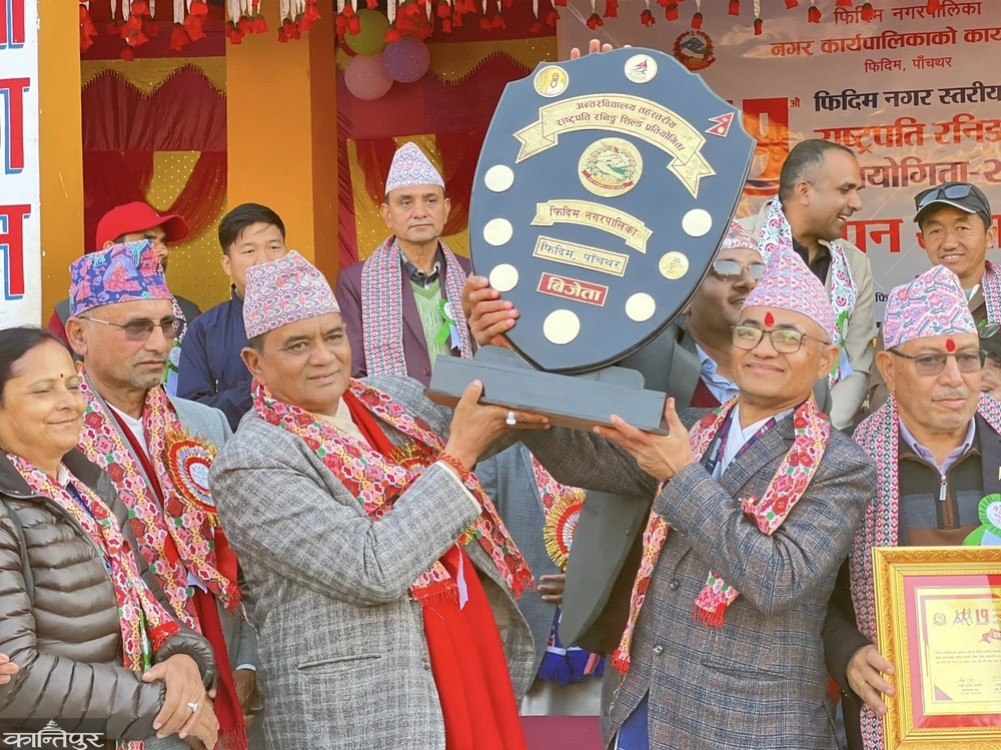 पाँचथर ।   सातौं राष्ट्रपति रनिङ शिल्ड पनि फिदिम माध्यमिक विद्यालयले जित्न सफल भएको छ । फिदिम नगरपालिका १ वडामा रहेको फिदिम माध्यमिक विद्यालय यो लगातार चौथो पटक नगरपालिका स्तरीय सातौं राष्ट्रपति रनिङ शिल्ड जितेको हो ।