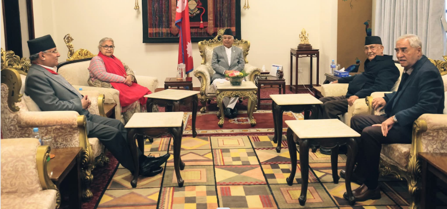 काठमाडौं । राष्ट्रपति कार्यालयमा प्रधानमन्त्री र तीन दलका शीर्ष नेताबीच अहिले भेटवार्ता भएको छ । राष्ट्रपति रामचन्द्र पौडेलको आह्वानमा प्रधानमन्त्री सुशीला कार्कीसहित शीर्ष तीन नेता कांग्रेस सभापति शेरबहादुर देउवा, एमाले अध्यक्ष केपी शर्मा ओली र नेपाली कम्युनिस्ट पार्टीका संयोजक पुष्पकमल दाहाल प्रचण्डबीच आज शीतल निवास भेटवार्ता भएको हो। मंगलबार राष्ट्रपतिको आह्वानमा तीन दलका शीर्ष नेता र…